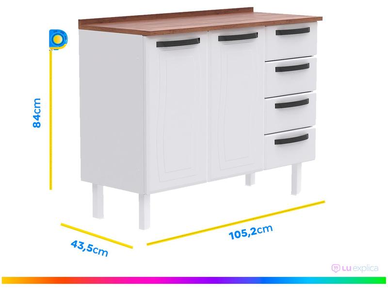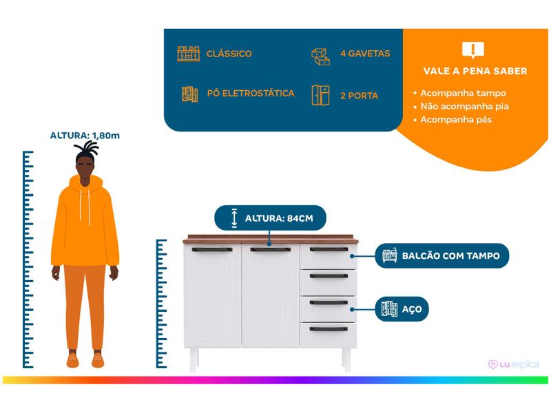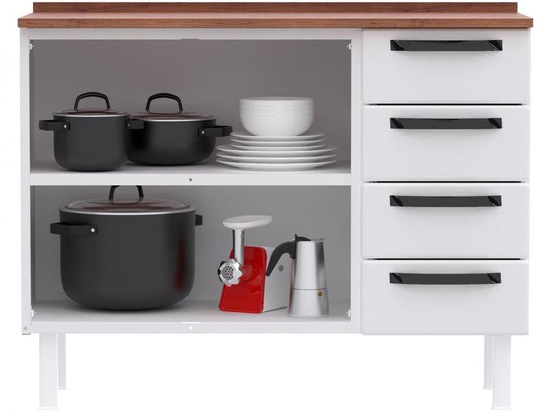 Balcão de Cozinha Colormaq com Tampo Aço 2 Portas 4 Gavetas Barcelona