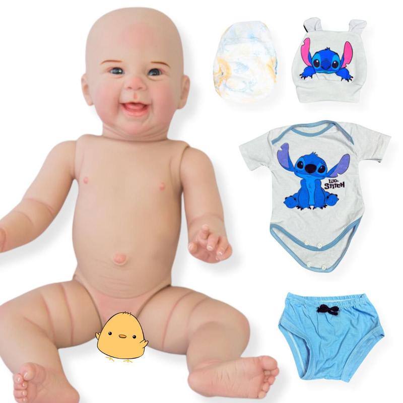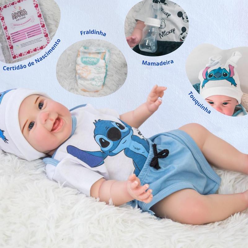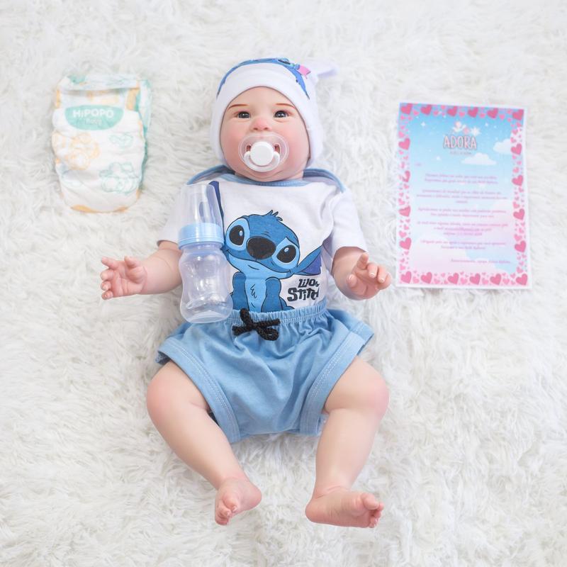 Bebê Reborn Boneco Menino Realista Stitch Original Articulado Corpo de Silicone VR TOYS
