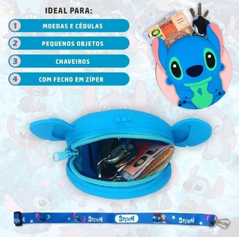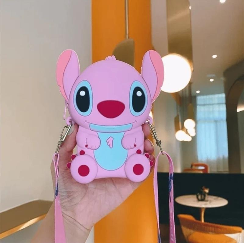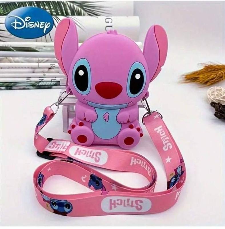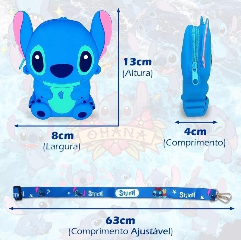 Bolsa Infantil Menina Silicone com Alça Ajustável Mini Bolsinha Lilo Stitch Angel com Zíper Carteira Porta Moedas Treco LVO