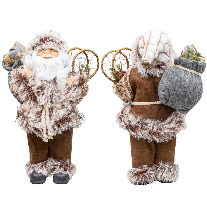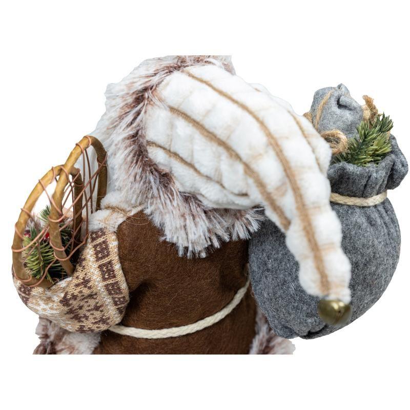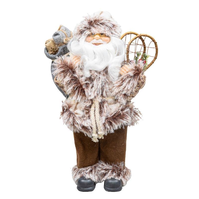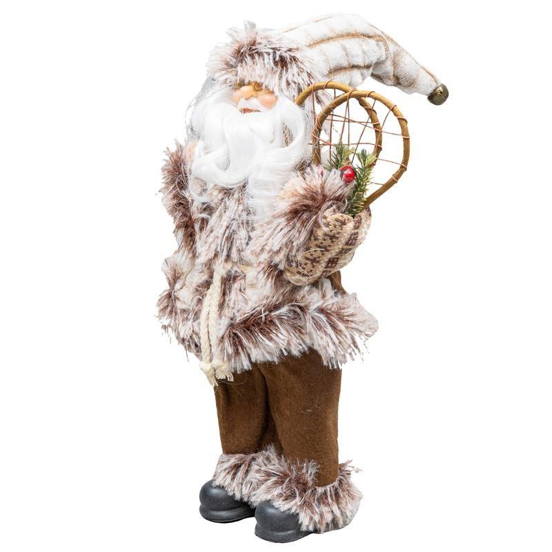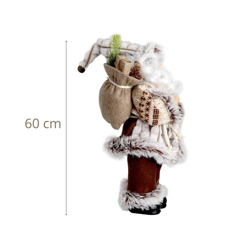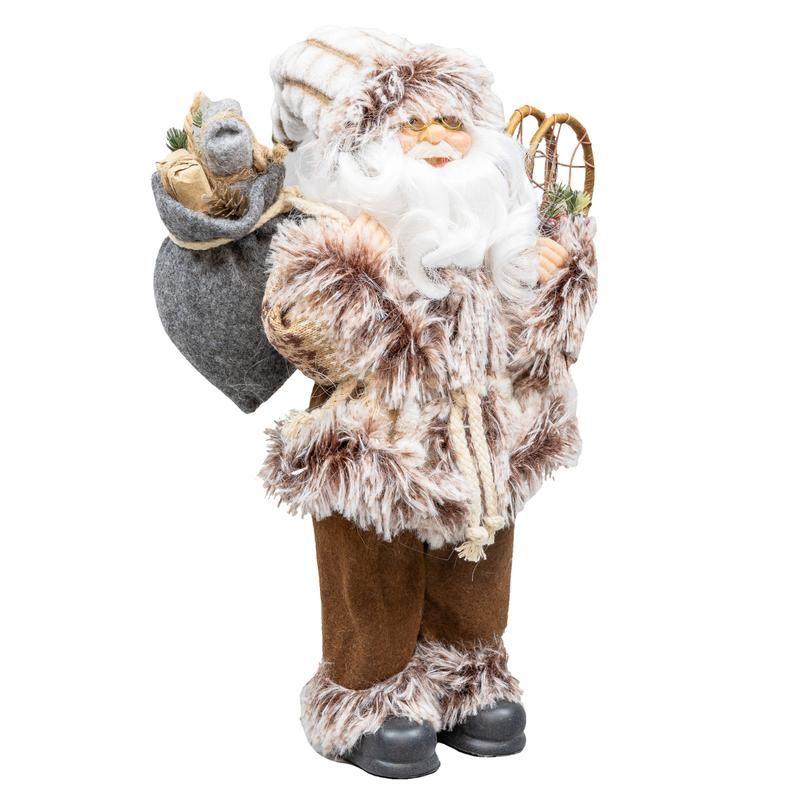 Boneco Papai Noel 60cm Casaco de Pele Calça Feltro Marrom Luxo Decoracao de Natal Premium Magizi