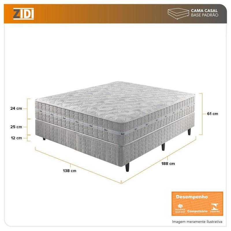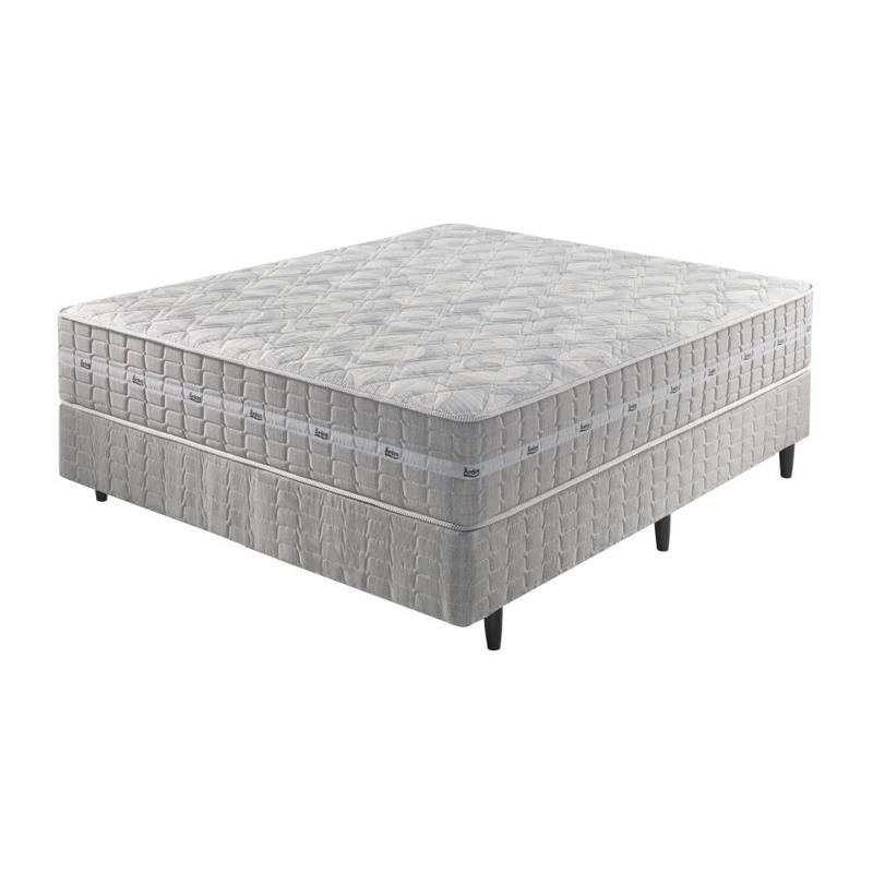 Cama Box Casal Cinza + Colchão Molas Ensacadas Alabama 138x188x61cm ZIDI
