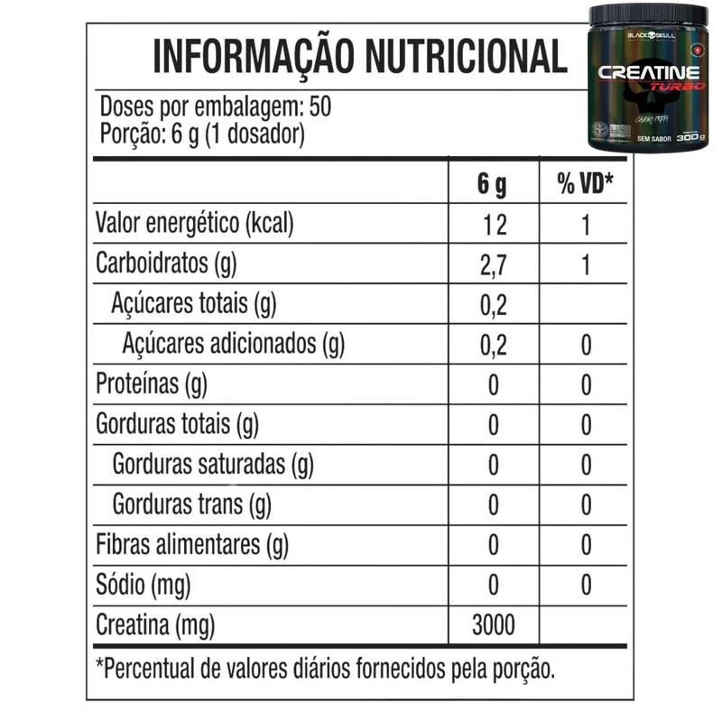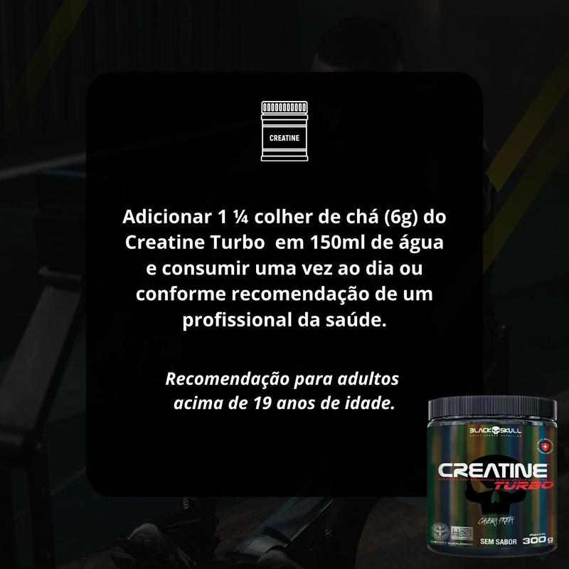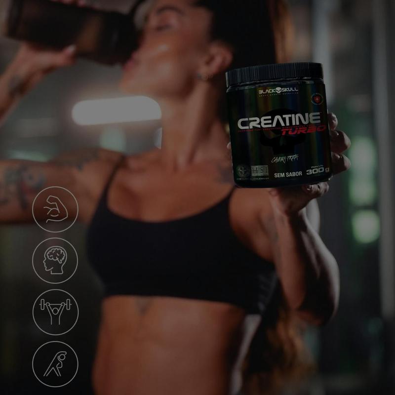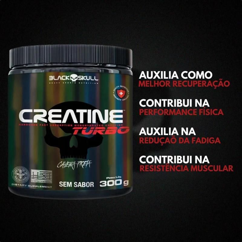 Creatina Monohidratada Creatine Turbo Black Skull 300g Energia Força Ganho de Massa Muscular