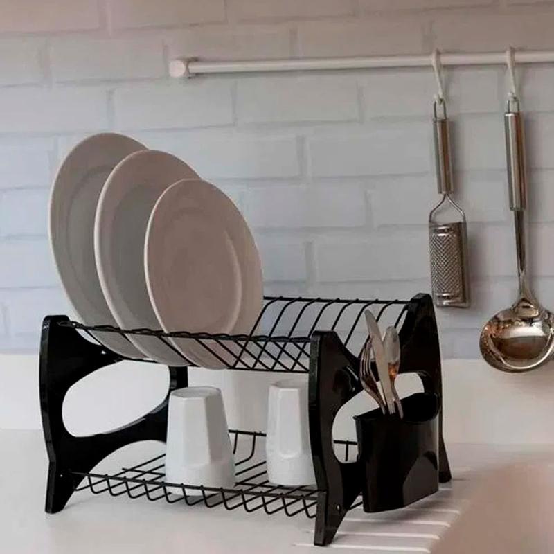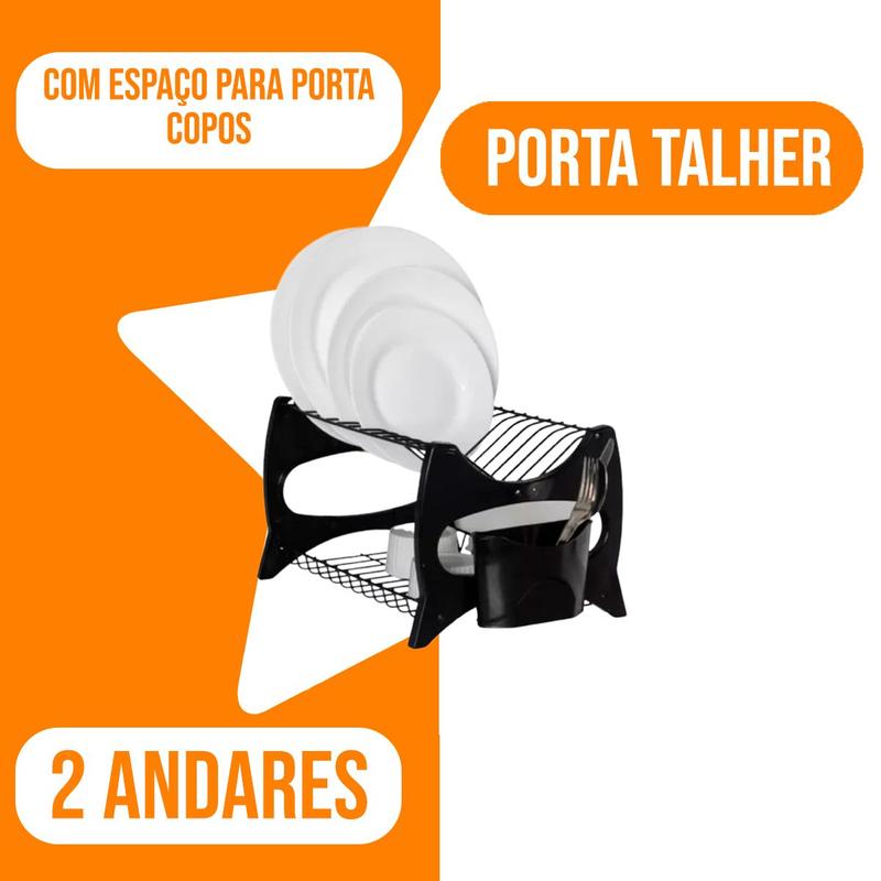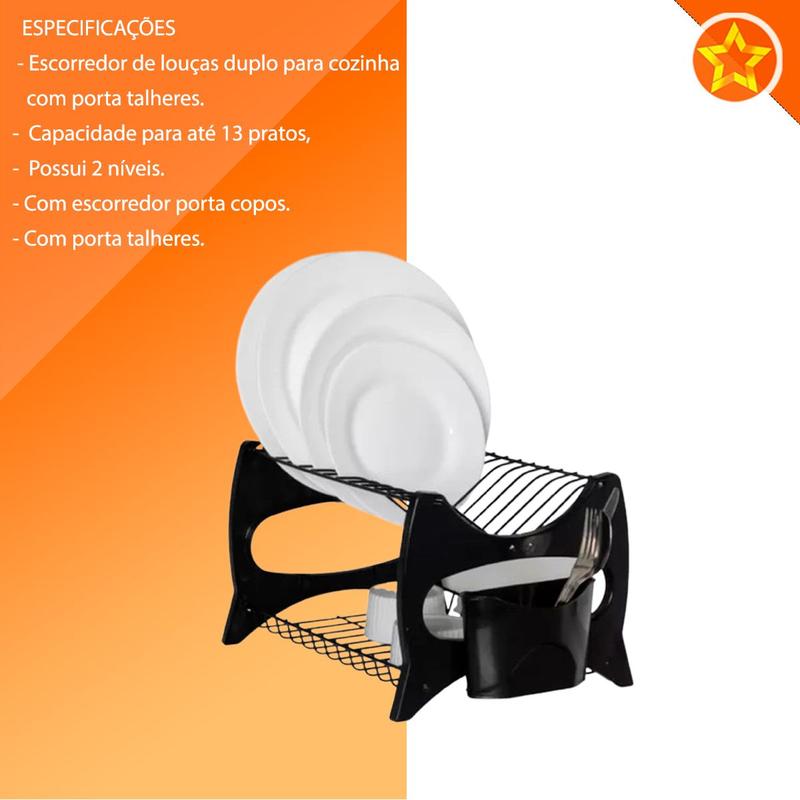 Escorredor De Louca Cozinha 13 Pratos Copo Duplo 2 Andares Porta Talheres MetalTru