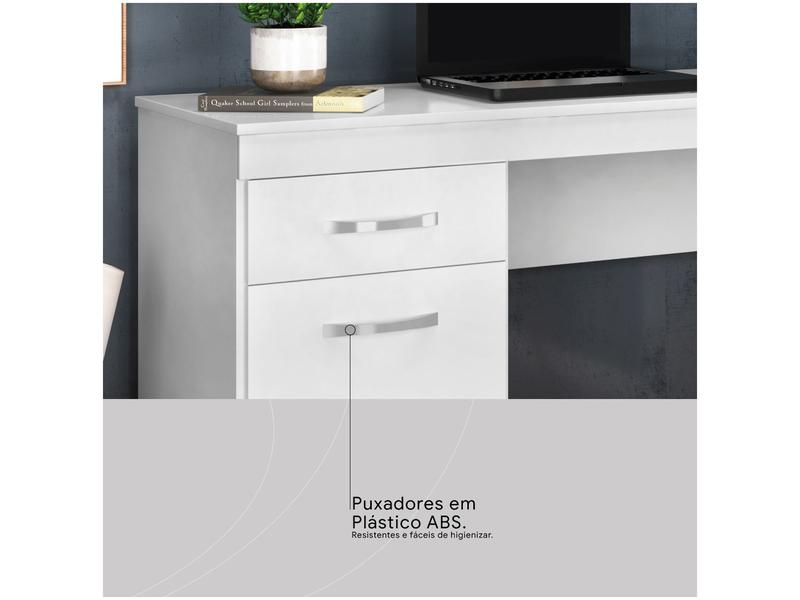 Deixe o seu ambiente de trabalho ou estudo ainda mais prático e funcional com a escrivaninha Vitória da Demobile. Produzida em MDP de qualidade, ela conta com revestimento e acabamento em pintura UV, que é um processo de tingimento da estrutura do móvel ecologicamente correto, já que na tinta utilizada não são utilizados solventes prejudiciais ao meio ambiente. É do tipo de apoio e conta com 1 gaveta e 1 porta para que você possa guardar documentos, livros, materiais de papelaria e o que mais precisar, deixando tudo organizado. Seu design moderno e sua cor neutra permite que ela combine facilmente com estilos variados de decorações, agregando beleza e conforto ao seu dia a dia.