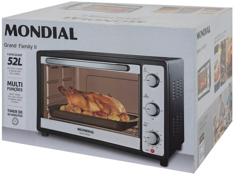 Forno Elétrico de Bancada Mondial com Timer 52L Preto e Prata Grand Family II FR-52