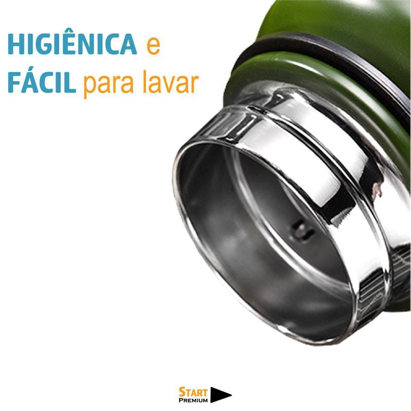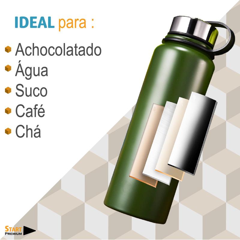 Garrafa compacta, Ideal para casa, escritório, viagens, camping, etc. No caso de uso pra o camping o modelo já tem um design bem compacto e fácil de transportar, que reluz ao estilo militar. Aliada à capacidade de conservar quente ou frio por até 4 horas, a garrafa térmica é inteiramente em AÇO INOX, o que a torna inquebrável e impossível de enferrujar em condições normais.