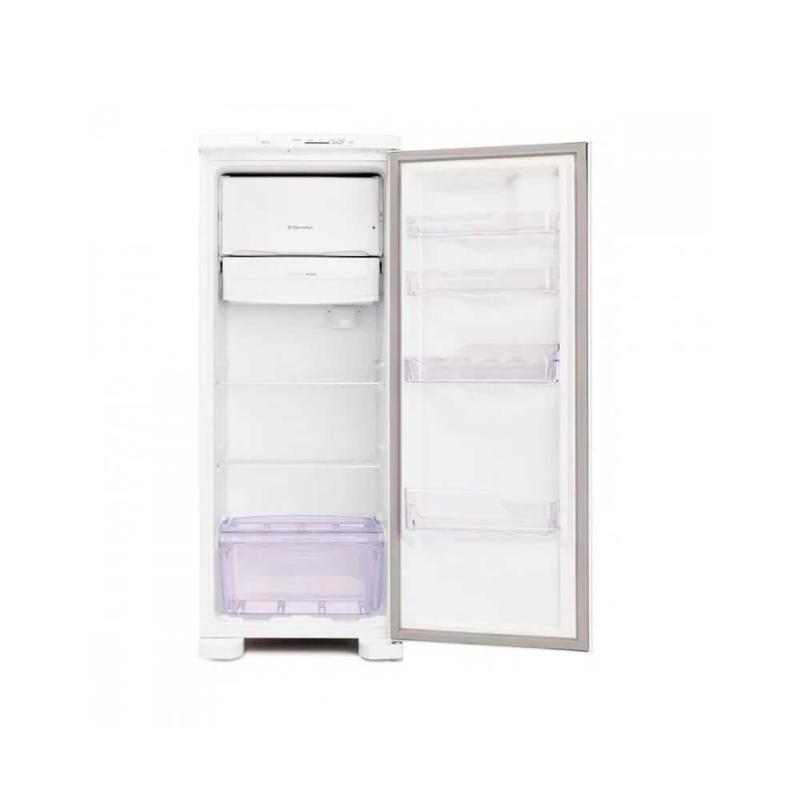 Design único e moderno que combina com a sua cozinha. Novo Controle externo da temperatura que facilita o ajuste da temperatura sem precisar abrir a porta. Prateleira porta-latas reversível para 5 unidades, gaveta extra fria. Além do degelo prático, basta apertar o botão para descongelar. Este modelo é Cyclo defrost! A Electrolux possui 2 tipos de geladeira, Cycle Defrost e Frost Free. A diferença entre os 2 é simples, a Frost free não acumula gelo, por isso, você não precisa descongelar nunca. Já a cycle defrost acumula um pouco, e precisa ser descongelada em torno de 2 vezes ao ano. Por isso, normalmente o freezer dele é maior, pois tem um compartimento de condensador de gelo. Em resumo, se você quer mais praticidade, a frost free é mais indicada. Mas, se quer economizar a cycle defrost é uma boa opção.