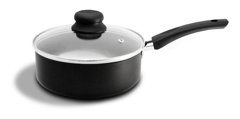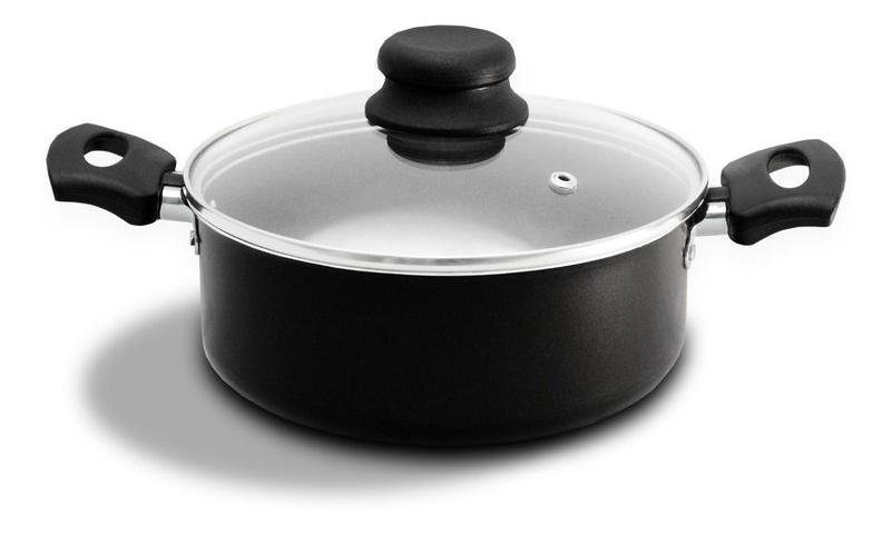 1 Caarola Antiaderente Preta com tampa de vidro, 18 cm de dimetro e capacidade para 1,8 litros.