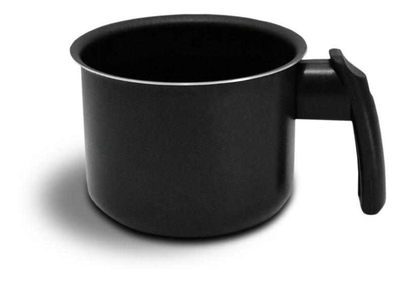1 Caneco Antiaderente Preto de 12 cm de dimetro e capacidade para 1,0 litros.