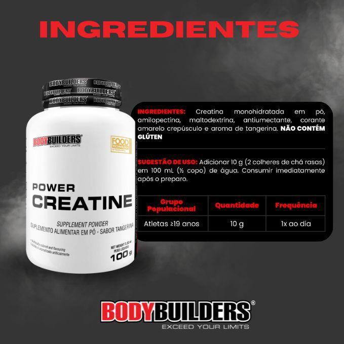 2x Power Creatina 100g sabor Tangerina: A Creatina Power Bodybuilders é um repositor de energia vital para seus músculos. Proveniente de um composto produzido naturalmente pelo organismo, a creatina é formada a partir da associação de 3 aminoácidos de alto valor biológico: arginina, glicina e metionina.