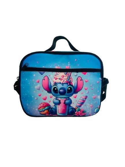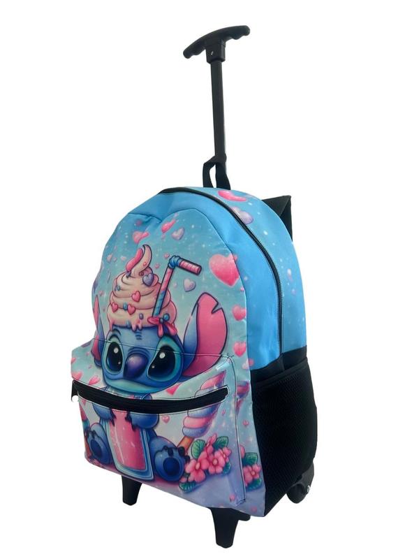 Kit Mochila Escolar Infantil Stitch sorvete de rodinha, acompanha lancheira e estojo. Possui alça de mão reforçada. Agora você pode levar sua mochila no seu dia a dia ou acompanhar você na escola. Sua abertura maior se dá por zíper com puxador. Na parte de dentro possui amplo espaço para a guardar diversos materiais como cadernos, livros e estojos. Na parte da frente, possui bolso com zíper para a guardar pertences de menor tamanho.