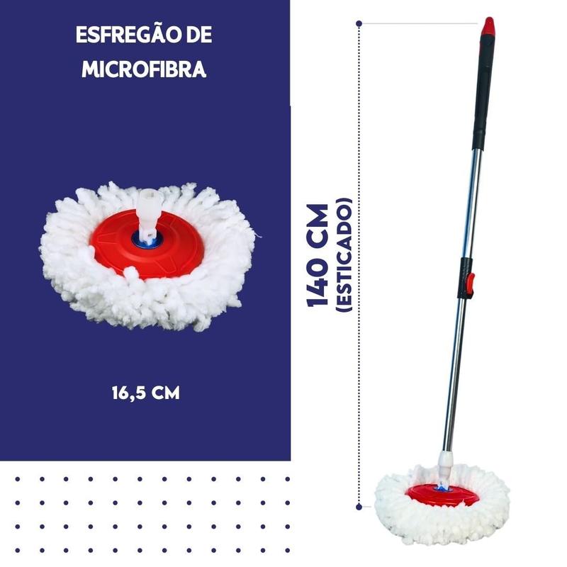 Mop giratório com cesto de inox. Tenha mais agilidade e qualidade durante a limpeza. O balde tem capacidade aproximada de 14 litros e o comprimento do cabo pode ser ajustado para o melhor uso.