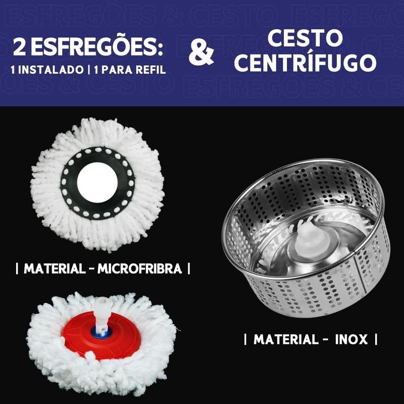 Mop Giratorio Com Cesto Em Inox Preto - Nybc