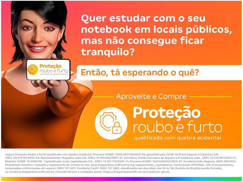 👤Laura 5.0⭐ Ótimo custo benefício! Muito mais leve que o meu not anterior.