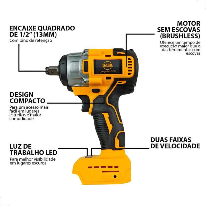 Parafusadeira Chave De Impacto E Furadeira Sem Fio Portátil Com Maleta Para Pneus B-Tek/BM-DZ13 2 Bateria Nf B-Max