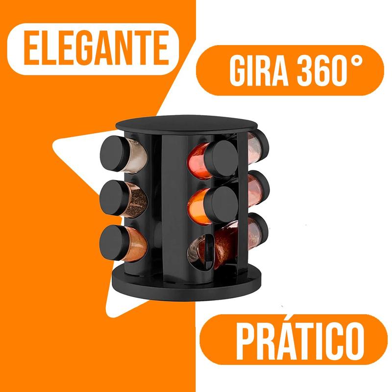 Giratório 360: Este porta condimentos possui um mecanismo giratório de 360 graus, permitindo que você gire facilmente os recipientes para acessar o tempero desejado.