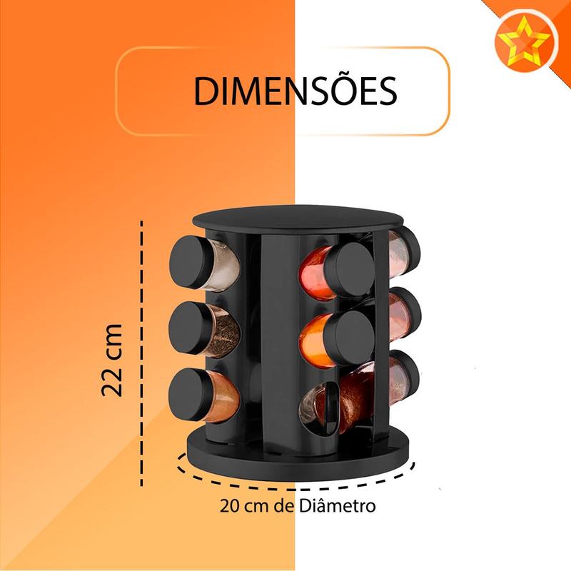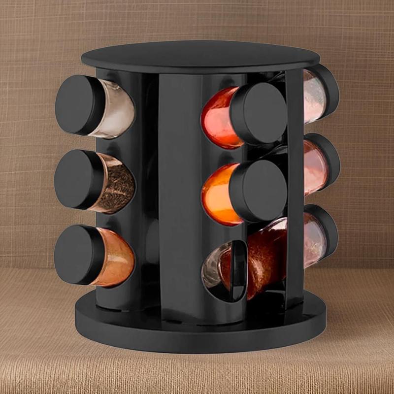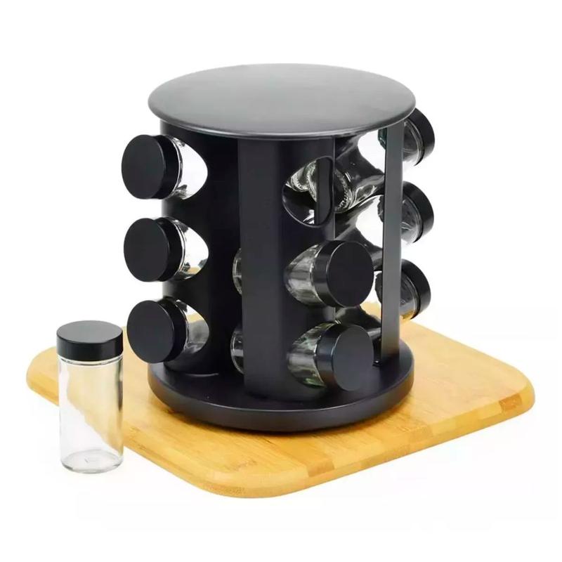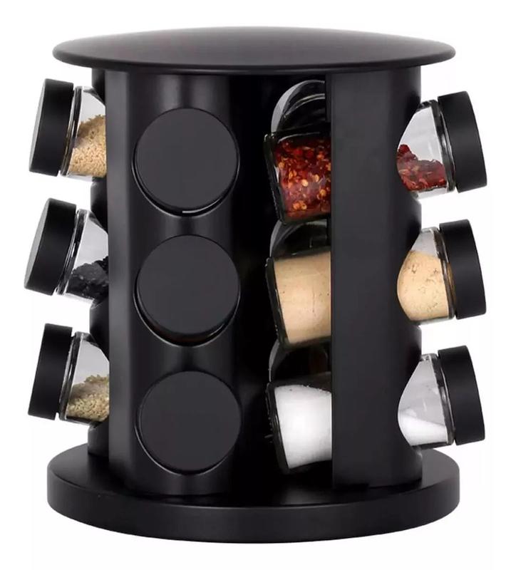 Porta temperos e Condimentos Giratório Com 9 Potes de vidro Preto Belakaza