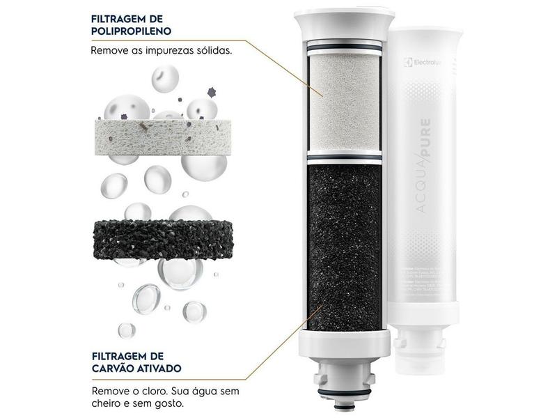 O purificador de água Pure 4x Electrolux possui tecnologia Powerjet, que enche seu copo até 4x mais rápido. Esse modelo possui Tecnologia Acqua Pure que reduz cloro, odores e outras partículas presentes na sua água*. Além disso, é eficaz no controle do nível microbiológico* da sua água. Com design compacto e inovador, esse purificador de água Electrolux é ideal para casas compactas e pode ser instalado em bancadas. O painel touch possui iluminação de LED para sinalizar a saturação do filtro e facilitar a escolha de uma das 3 temperaturas de água: natural, fria ou gelada. A troca de refil é fácil e simples, a cada 3.000 litros ou 6 meses de uso. O alerta de troca de filtro sinaliza a hora certa de substituir. O purificador também conta com bandeja removível e pés de borracha antiderrapante, facilitando a limpeza sem comprometer a estabilidade e boa performance. *Testado de acordo com a Portaria 394/2014 e ABNT NBR 16098:2012. ** Testado com a bactéria Pseudomonas aeruginosa conforme ABNT NBR16098:2012".