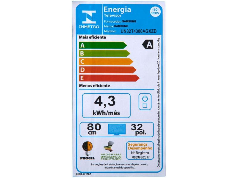 Curta seus filmes, séries e programas favoritos com a máxima qualidade de imagem e som com a Smart TV Samsung T4300. Com uma tela LED de 32" e resolução HD (1366x768), ela oferece uma quantidade muito maior de detalhes, mais nitidez e cores vibrantes que vão surpreender você e todos seus amigos e familiares. A conectividade via Wi-Fi Direct e 2 entradas HDMI, 2 USB irão manter você sempre conectado e por dentro de tudo. Além disso, ela também conta com sistema operacional Tizen, processador Hyper Real, HDR e sistema de espelhamento de smartphone para TV. Ainda conta com tecnologia LED e 60Hz de frequência.
