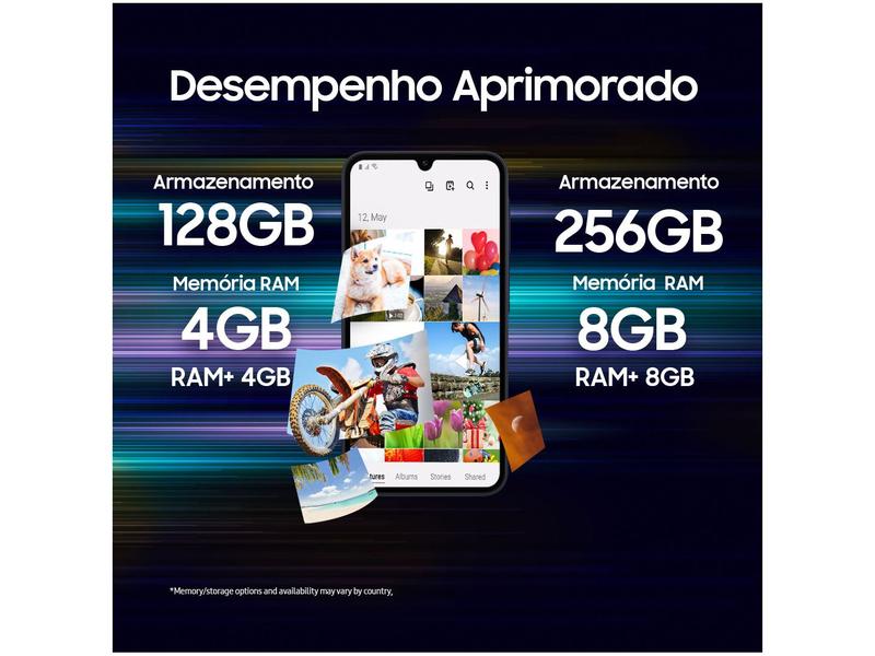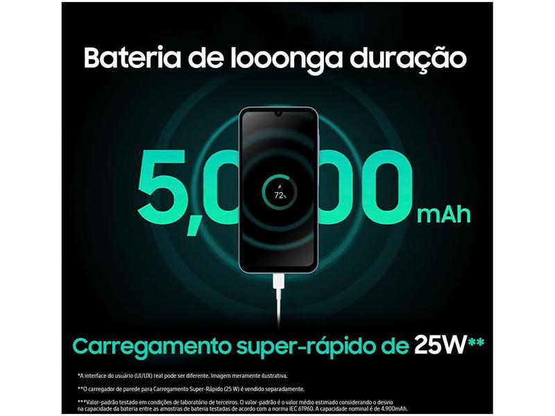 O Samsung Galaxy A15 azul escuro é o smartphone que vai te acompanhar em todos os momentos. Com design moderno e infinita Super AMOLED de 6,5", ele é perfeito para assistir filmes, jogar e navegar nas redes sociais. Para tirar ótimas fotos, a câmera traseira é tripla de 50MP + 5MP + 2MP que garantem fotos e vídeos de alta qualidade, enquanto a câmera frontal de 13MP, é ideal para selfies e videochamadas. Para guardar diversos arquivos, ele é equipado com 128GB de armazenamento interno e os 4GB de memória RAM, garante um desempenho rápido e eficiente, mesmo em multitarefas. Para acessar a internet de onde estiver, ele tem tecnologia 4G e é Dual Chip. Além disso, tem bateria de longa duração de 5000mAh para você ficar conectado o dia todo. Produto não acompanha fone de ouvido.